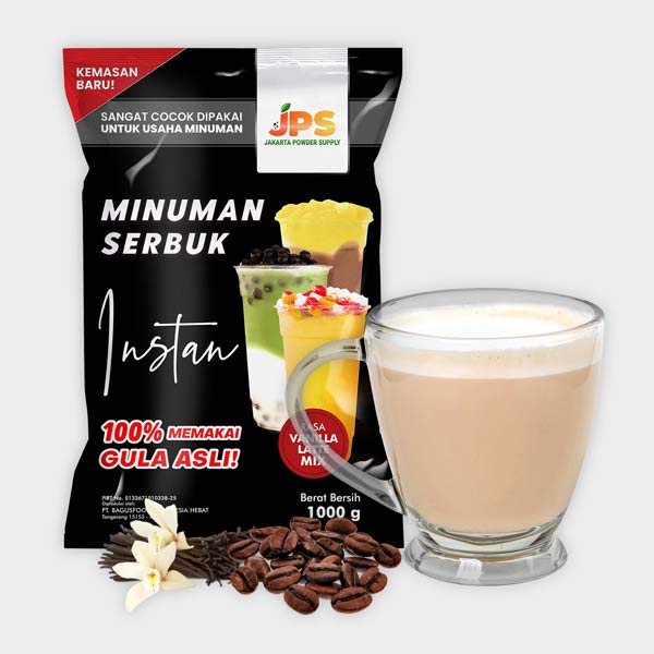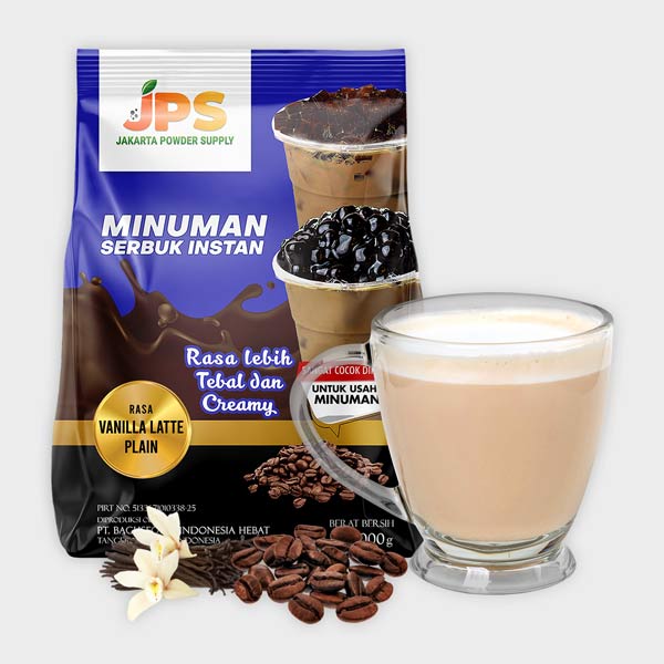 Bubuk rasa Vanilla Latte yang mudah untuk disajikan sebagai minuman maupun pelengkap makanan.